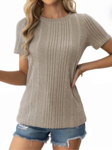 A neutral ribbed t-shirt is a must-have for any wardrobe. It pairs effortlessly with jeans, trousers, or skirts and creates a clean, put-together look. Stick with versatile colors like white, beige, black, or gray.